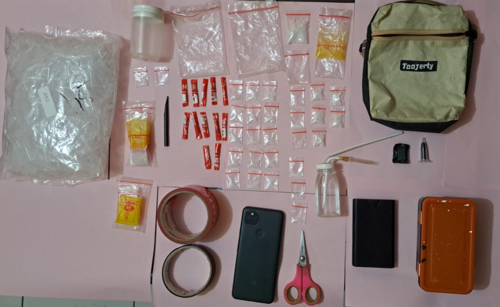 Selain itu, lanjut Yudi, pihaknya juga mengamankan barang bukti lain berupa 2 pak plastik bening, sebuah lakban merah bertuliskan Fragile, sebuah double tape warna hijau, sebuah gunting warna pink, sebuah timbangan digital warna hitam, seperangkat alat hisap (bong), 2 unit handphone, uang tunai sebesar Rp150.000, dan satu unit sepeda motor Yamaha Fino warna biru putih tanpa pelat nomor.