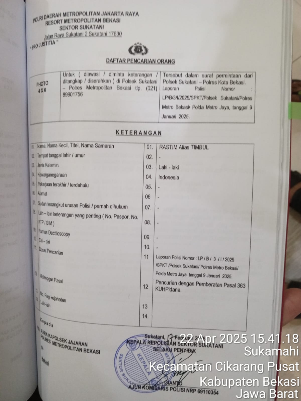 Timsus AWIBB Jabar menyoroti keras Kepala Sekolah SDN Sukadarma 02, Sukatani, lantaran salah satu tenaga pendidiknya, bernama Rastim alias Timbul, berdasarkan Laporan Polisi Nomor: LP/B/3/1/2025/SPKT/POLSEK SUKATANI/POLRES METRO BEKASI/POLDA METRO JAYA, tertanggal 9 Januari 2025, ditetapkan sebagai tersangka kasus pencurian dengan pemberatan Pasal 363 KUHPidana. Dari empat pelaku, Rastim disebut sebagai otak utama tindak kriminal tersebut, dan hingga kini dinyatakan buron/DPO.