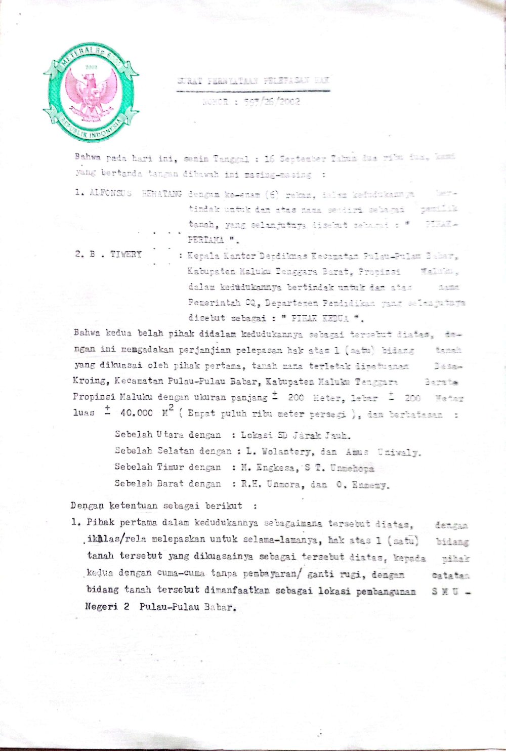 “Artinya, sekolah ini sudah berstatus negeri selama 26 tahun, tapi kelengkapan administrasi seperti sertifikat tanah belum ada. Ini menjadi hambatan untuk peningkatan kualitas belajar mengajar di sekolah,” ungkapnya.