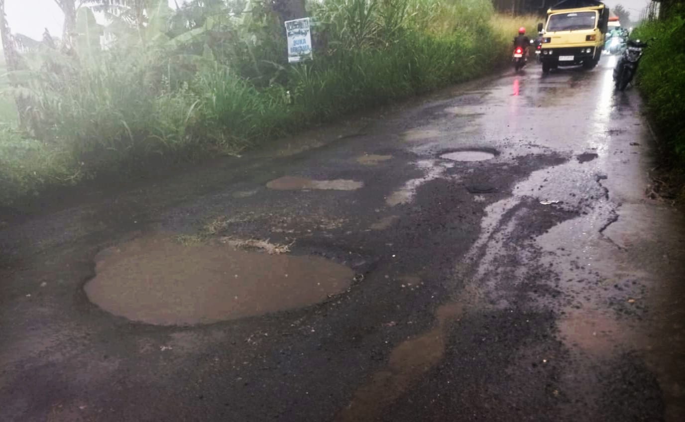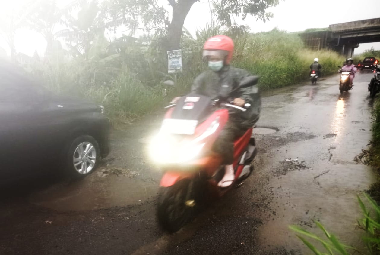 Warga melaporkan beberapa pengendara motor terjatuh dalam beberapa hari terakhir, terutama pada malam hari ketika penerangan minim. Kombinasi curah hujan tinggi, pergantian panas terik, drainase buruk, dan lalu lintas kendaraan berat mempercepat kerusakan aspal sehingga lubang melebar dan semakin dalam. Saat hujan, lubang tertutup air sehingga sulit terlihat, meningkatkan risiko kecelakaan dan beban layanan kesehatan setempat.