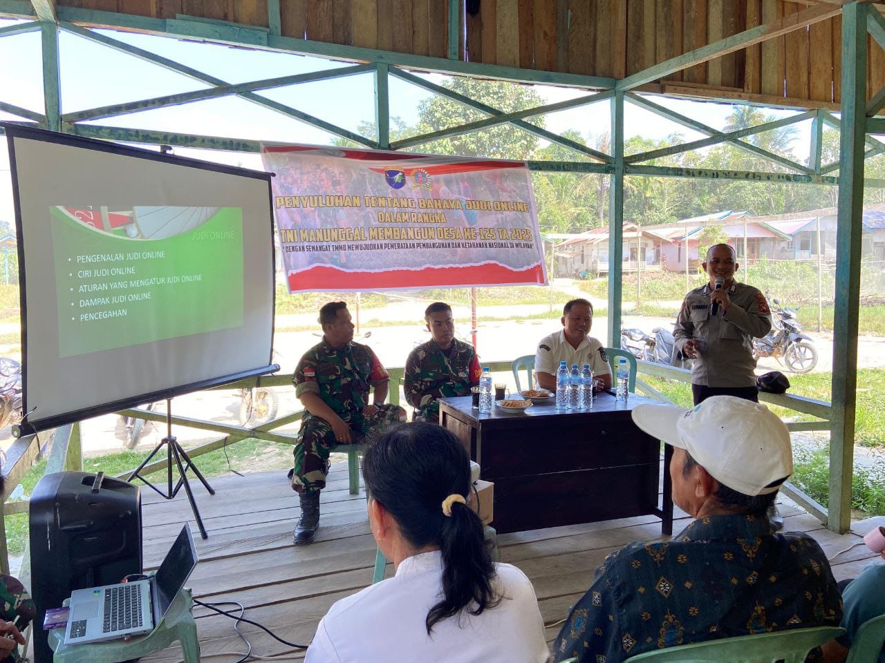Dalam rangkaian kegiatan TNI Manunggal Membangun Desa (TMMD) ke-125 yang digelar oleh Kodim 1205/Sintang, dilaksanakan penyuluhan tentang bahaya permainan J*d! online kepada masyarakat Desa Sungai Pengga, Kecamatan Kayan Hilir, Kabupaten Sintang, Kamis (14/8/2025).