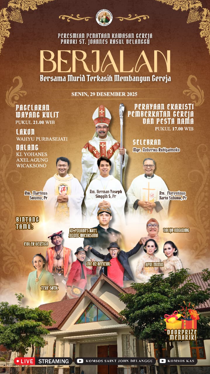 Peresmian penataan kawasan Gereja Paroki St. Joannes Rasul Delanggu yang digelar hari ini bukan sekadar seremoni formal. Bagi banyak umat, momen ini merupakan puncak dari perjalanan panjang yang dipenuhi kerja bakti, doa, dan pengorbanan. Rampungnya renovasi di tengah perayaan Natal dan menyongsong Tahun Baru 2026 menjadi hadiah istimewa yang menyatukan makna spiritual dan kebersamaan komunitas. Tema “Berjalan Bersama Murid Terkasih Membangun Gereja” terasa hidup di setiap sudut kawasan yang kini tertata rapi, mulai dari akses jalan hingga ruang terbuka untuk kegiatan pastoral dan sosial (29/12/2025).