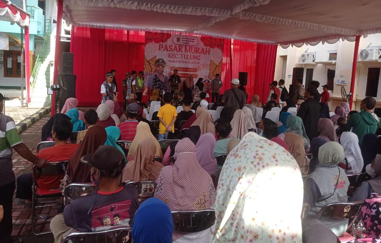 Pelataran Kecamatan Tulung dipenuhi warga pada pelaksanaan Pasar Murah yang digelar untuk meringankan beban keluarga rentan menjelang bulan suci Ramadhan. Acara dibuka dengan doa bersama dan sambutan dari Camat Tulung, Henry Pamungkas (06/03/2026).