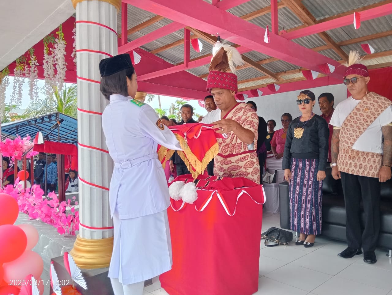 Camat Babar Timur, Viktor Lakburlawal, S.T., bertindak sebagai inspektur upacara dengan menggunakan pakaian adat khas Babar Timur. Sedangkan Komandan Upacara dipimpin Sertu Welem Labobar dari Koramil 1511-03 Kecamatan Babar Barat.